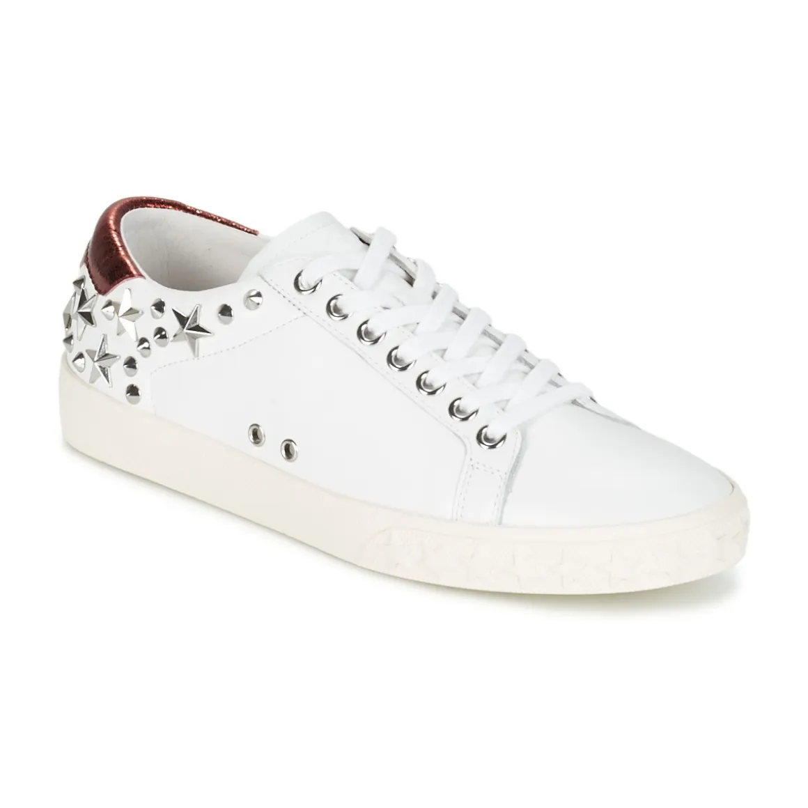 Impossible de passer à côté de cette basket basse signée Ash. Couleur blanche et rivets étoilés sont au programme de ce modèle au caractère affirmé.Une création qui séduira toutes les fans de sneakers.